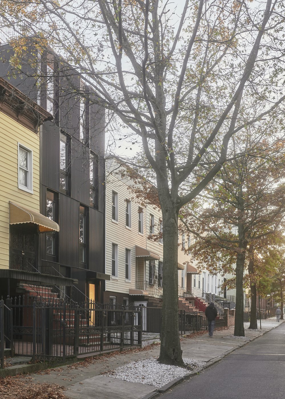 An apartment building. Built. Located in Brooklyn, New York. Occupies 4,584 sq ft. Role as Architectural Designer during Construction Documents. Photography by Jake Balston